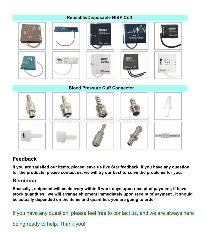 Allt úrval af 7 stærðum til að passa handlegg flestra sjúklinga frá ungbarni til læri
