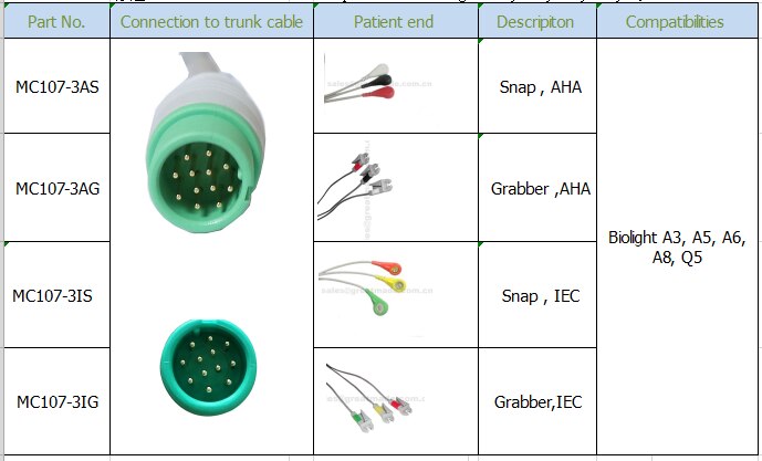 maq per Qat: samhæfður biolight a3, a5, a6, a8, q5 ekg snúru með víraflutningi. sími, 3-leiða, grípa, grænn 12pin, Kína, framleiðendur, aðlaga, magn, kaupa afslátt, lágt verð, hágæða