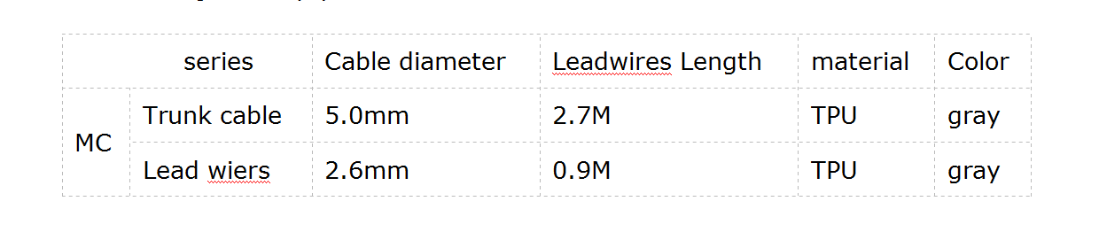 Sæktu um fjölskammta skjá / hjartarafritvél / æfingar hlaupabretti eða hjartastuðtæki, sendu líf-rafmagn merki mannslíkamans. Sjúklingasnúrurnar og rafskautaleiðslurnar eru notaðar til að tengja rafskaut, legg og / eða skynjara sem eru staðsettir á viðeigandi stöðum á sjúklingnum við eftirlitstæki til almenns eftirlits og / eða greiningarmats heilbrigðisstarfsmanns