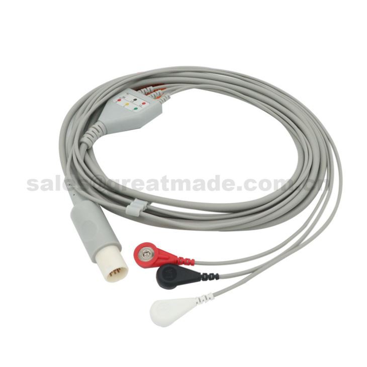 maq per Qat: samhæft við hellige scp 844, scp 851, scp 852, scs 804 eins stykki ekg snúru með 3 leiða víra fyrir sjúklingaskjá, aha, smella, Kína, framleiðendur, sérsniðnir, magn, kaupa afslátt, lágt verð, hágæða