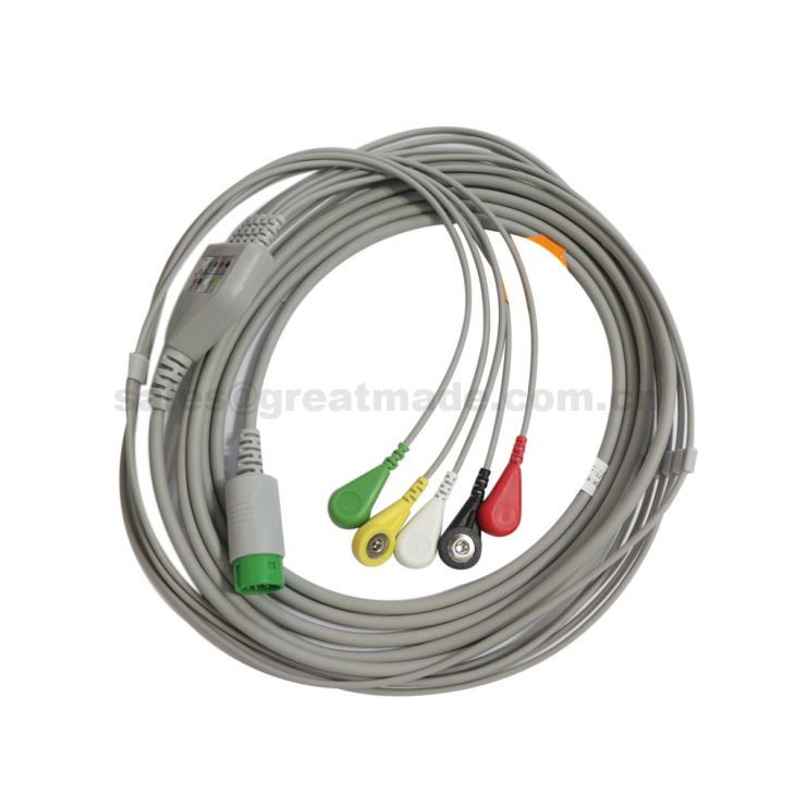 maq per Qat: samhæft við mindeview t5. t6. t8, pm5000, pm 6000, eins stykki 5-leiða skjöldur ecg snúru smella, rafmagns, 12ft, umferð 12pin., Kína, framleiðendur, aðlaga, magn, kaupa afslátt, lágt verð, hágæða