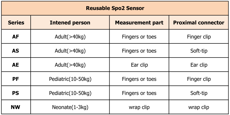(AF&AS raðnúmer) Hinn stórkostlegi endurnýjanlegi spo2 skynjari er tengdur við samhæfan púlsoximeter fyrir stöðugt eftirlit með áreynslu á súrefnismettun slagæðarhemóglóbíns (SpO2) og púlshraða (PR) fyrir fullorðna sjúklinga sem vega meira en 40 kg.