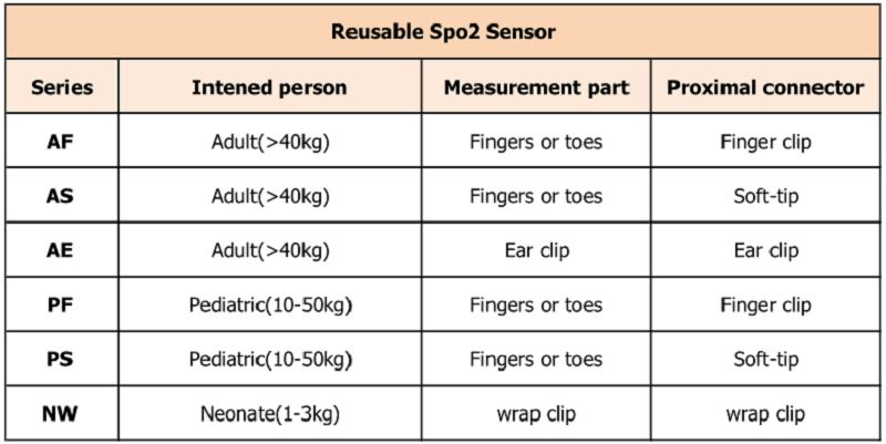 (AF&AS raðnúmer) Hinn stórkostlegi endurnýjanlegi spo2 skynjari er tengdur við samhæfan púlsoximeter fyrir stöðugt eftirlit með áreynslu á súrefnismettun slagæðarhemóglóbíns (SpO2) og púlshraða (PR) fyrir fullorðna sjúklinga sem vega meira en 40 kg.